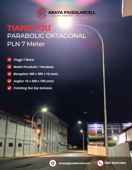 Tiang PJU parabolic oktagonal 7 Meter adalah bentuk lekukan atau lengkung yang menyerupai parabola, biasanya pada lengan tiangnya. Desain ini bukan hanya estetis, tapi juga memperluas jangkauan cahaya.. Desain ini memberikan stabilitas tinggi serta tampilan modern yang cocok untuk berbagai lingkungan. Material yang digunakan umumnya baja galvanis, tahan karat, dan tahan cuaca ekstrem. Sistem penerangan… selengkapnya