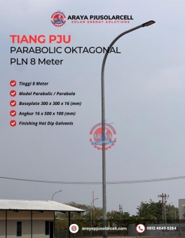 *Harga Hubungi CSTiang PJU parabolic oktagonal 8 Meter adalah bentuk lekukan atau lengkung yang menyerupai parabola, biasanya pada lengan tiangnya. Desain ini bukan hanya estetis, tapi juga memperluas jangkauan cahaya.. Desain ini memberikan stabilitas tinggi serta tampilan modern yang cocok untuk berbagai lingkungan. Material yang digunakan umumnya baja galvanis, tahan karat, dan tahan cuaca ekstrem. Sistem penerangan… selengkapnya