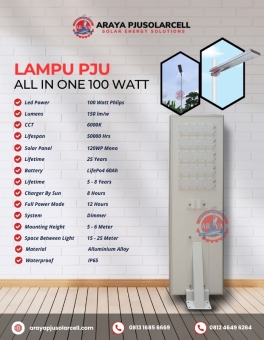 Lampu PJU Solarcell All in One 100 Watt AIOM adalah inovasi penerangan jalan. Produk ini menggabungkan teknologi solar dan LED. Energi terbarukan mendukung penerangan jalan yang efisien. Teknologi ini mengurangi biaya listrik. Selain itu, ramah lingkungan. Banyak kota mulai beralih ke produk ini. Penggunaan energi matahari semakin meningkat. Keunggulan dan kemudahan pemasangan menjadi nilai plus…. selengkapnya