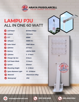 *Harga Hubungi CSLampu PJU Solarcell All in One 60 Watt AIOM adalah inovasi penerangan jalan. Produk ini menggabungkan teknologi solar dan LED. Energi terbarukan mendukung penerangan jalan yang efisien. Teknologi ini mengurangi biaya listrik. Selain itu, ramah lingkungan. Banyak kota mulai beralih ke produk ini. Penggunaan energi matahari semakin meningkat. Keunggulan dan kemudahan pemasangan menjadi nilai plus…. selengkapnya
