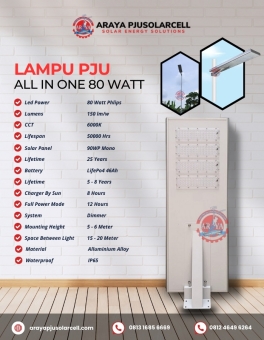 *Harga Hubungi CSLampu PJU Solarcell All in One 80 Watt AIOM adalah inovasi penerangan jalan. Produk ini menggabungkan teknologi solar dan LED. Energi terbarukan mendukung penerangan jalan yang efisien. Teknologi ini mengurangi biaya listrik. Selain itu, ramah lingkungan. Banyak kota mulai beralih ke produk ini. Penggunaan energi matahari semakin meningkat. Keunggulan dan kemudahan pemasangan menjadi nilai plus…. selengkapnya